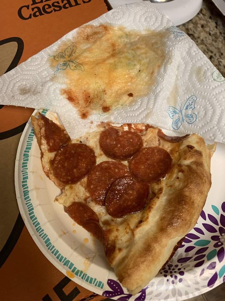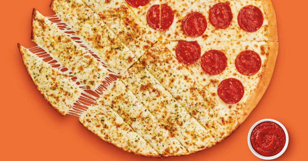 Four slices of Pepperoni pizza combined with eight Italian Cheese Stix, plus Crazy Sauce
